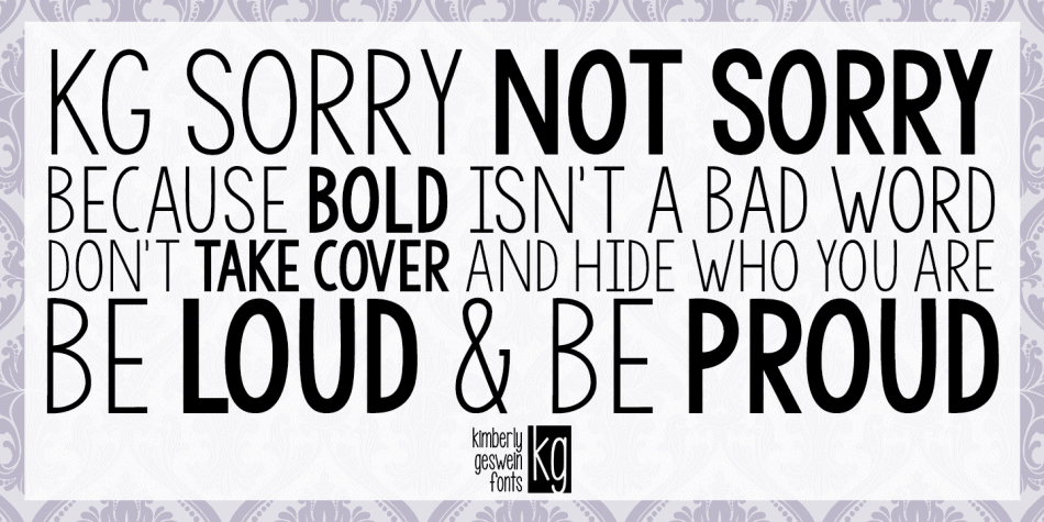 KG Sorry Not Sorry is a Sans font by Kimberly Geswein Fonts, first seen on MakersType on October 7, 2020.